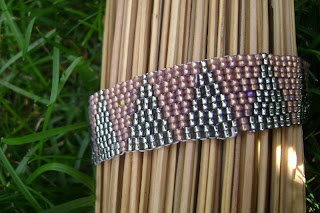 yup in the fall i only work about two months. those two months just flew by The fall activities at Koetsier's can be kind of fun. But at the same time over whelming. But over the last couple of days i have been making alot of 2 drop peyote bracelets. my jewelry inventory is adding up before my eyes. sometimes it seems to take forever for a bracelet to get finished, and sometimes its done before you know it. So now that tomorrow is my last day working you can only guess what i will be doing this winter months....Beading madly. So here a few pics of the bracelet i made.